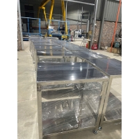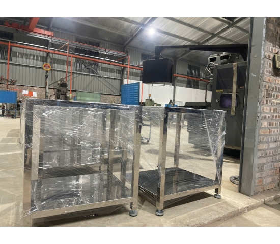Inox 304 là loại vật liệu được ưu tiên hàng đầu trong các ứng dụng phòng sạch nhờ khả năng chống gỉ sét, chống ăn mòn hóa học và không từ tính. Bề mặt nhẵn bóng của Inox 304 không chỉ tạo vẻ ngoài thẩm mỹ mà còn giúp việc vệ sinh, khử khuẩn trở nên nhanh chóng và hiệu quả, hạn chế tối đa sự bám dính của bụi bẩn và vi sinh vật. Khung bàn được hàn TIG (Tungsten Inert Gas) chắc chắn, một phương pháp hàn hiện đại cho mối hàn sạch, bền và ít cong vênh, đảm bảo tính toàn vẹn của kết cấu. Toàn bộ quá trình gia công tuân thủ theo tiêu chuẩn kỹ thuật nghiêm ngặt, từ khâu chọn vật liệu đến cắt, hàn, mài và hoàn thiện, nhằm cung cấp sản phẩm có chất lượng đồng bộ và vượt trội.