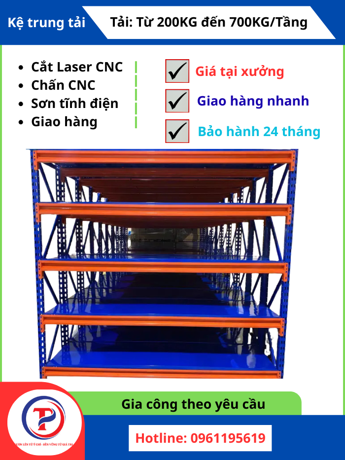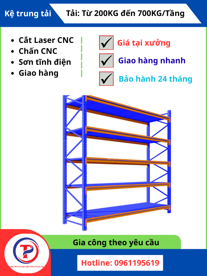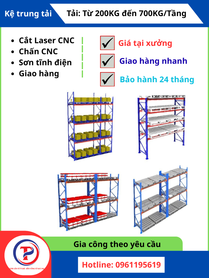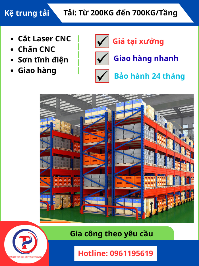 Nhiều hệ thống giá kệ công nghiệp có tính linh hoạt cao, cho phép điều chỉnh cấu hình, thêm bớt tầng hoặc mở rộng hệ thống khi nhu cầu thay đổi. Tại Tâm Phát Holding, chúng tôi không chỉ cung cấp sản phẩm mà còn có dịch vụ gia công, sản xuất theo yêu cầu, giúp doanh nghiệp có được giải pháp kệ tối ưu nhất cho không gian kho của mình.
