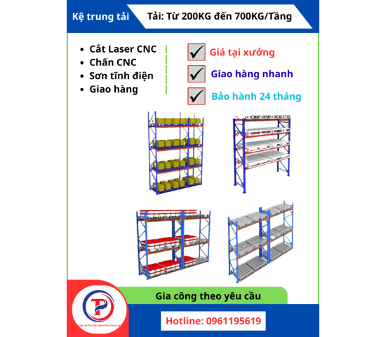 Giá kệ để hàng công nghiệp là những hệ thống lưu trữ được thiết kế chuyên biệt để chứa đựng, sắp xếp và quản lý số lượng lớn hàng hóa trong môi trường công nghiệp như nhà máy, kho bãi, trung tâm phân phối. Chúng được chế tạo từ các vật liệu bền bỉ như thép sơn tĩnh điện, thép mạ kẽm, hoặc thép không gỉ (Inox) để đảm bảo khả năng chịu tải cao và độ bền theo thời gian. Công ty Cổ phần Tâm Phát Holding, với kinh nghiệm sản xuất bàn ghế, giá kệ Inox, xe đẩy Inox, tủ điện, vỏ tủ điện, tủ Rack & kệ con lăn băng tải, thang máng cáp tự động hóa, gia công CNC, hiểu rõ yêu cầu khắt khe của ngành cơ khí và cung cấp các giải pháp kệ công nghiệp đa dạng.
