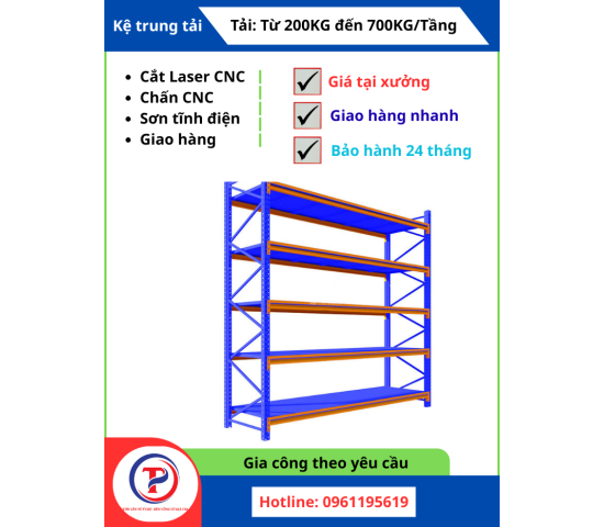Nhiều hệ thống giá kệ công nghiệp có tính linh hoạt cao, cho phép điều chỉnh cấu hình, thêm bớt tầng hoặc mở rộng hệ thống khi nhu cầu thay đổi. Tại Tâm Phát Holding, chúng tôi không chỉ cung cấp sản phẩm mà còn có dịch vụ gia công, sản xuất theo yêu cầu, giúp doanh nghiệp có được giải pháp kệ tối ưu nhất cho không gian kho của mình.